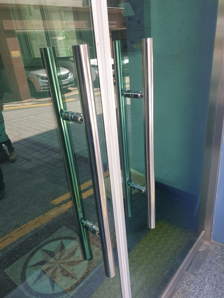 강화유리문 손잡이나 외부 노출이 있는 부속들은 시간이 지나면서 자연스럽게 노후가 진행됩니다.