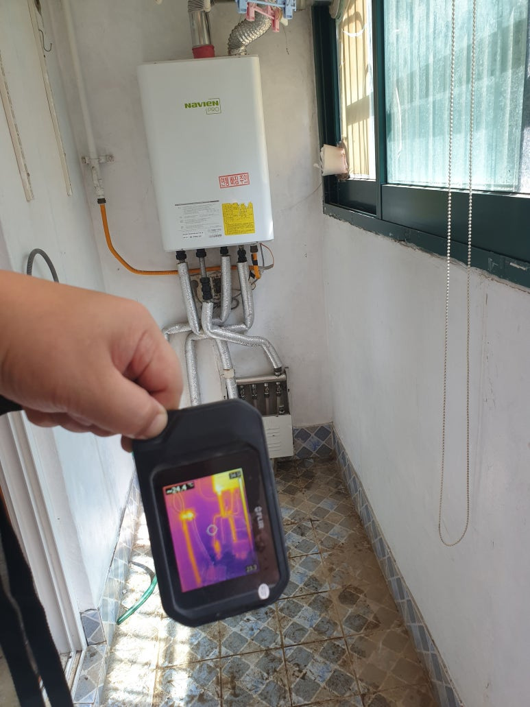 • 배관 위치 파악 — 열화상 카메라로 온수·보일러 배관이 지나는 위치 확인 후 작업