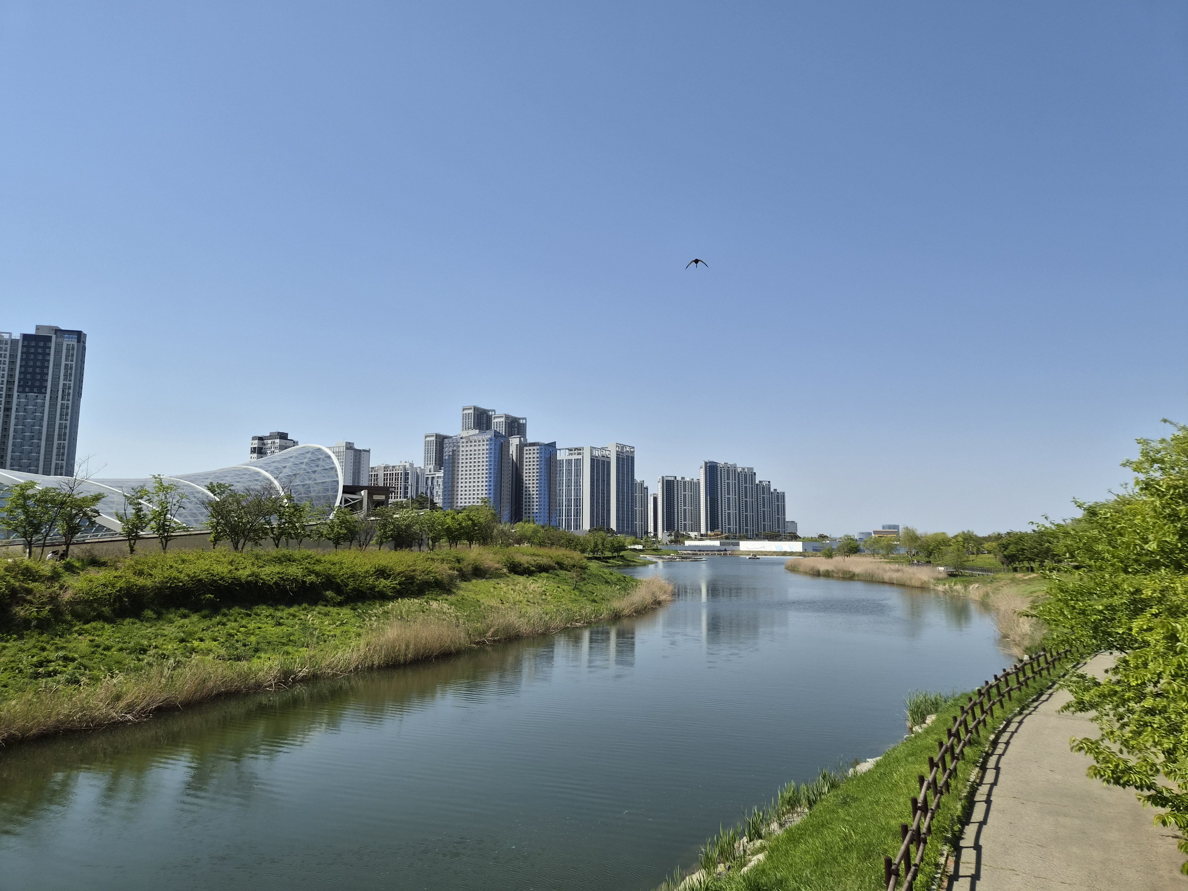 봄에 청라 커낼웨이는 정말 예뻐요. 수로를 따라 새잎이 돋아나는 나무들과 꽃들이 피어있어서 걷기만 해도 기분이 좋아져요. 킥보드나 유모차 끌고 다니기에도 산책로가 잘 정비되어 있고, 저녁에는 야경 조명까지 켜져서 하루 종일 즐길 수 있어요. 수로에 물고기들도 살고 있어서 아이랑 먹이주기 체험도 할 수 있어요.