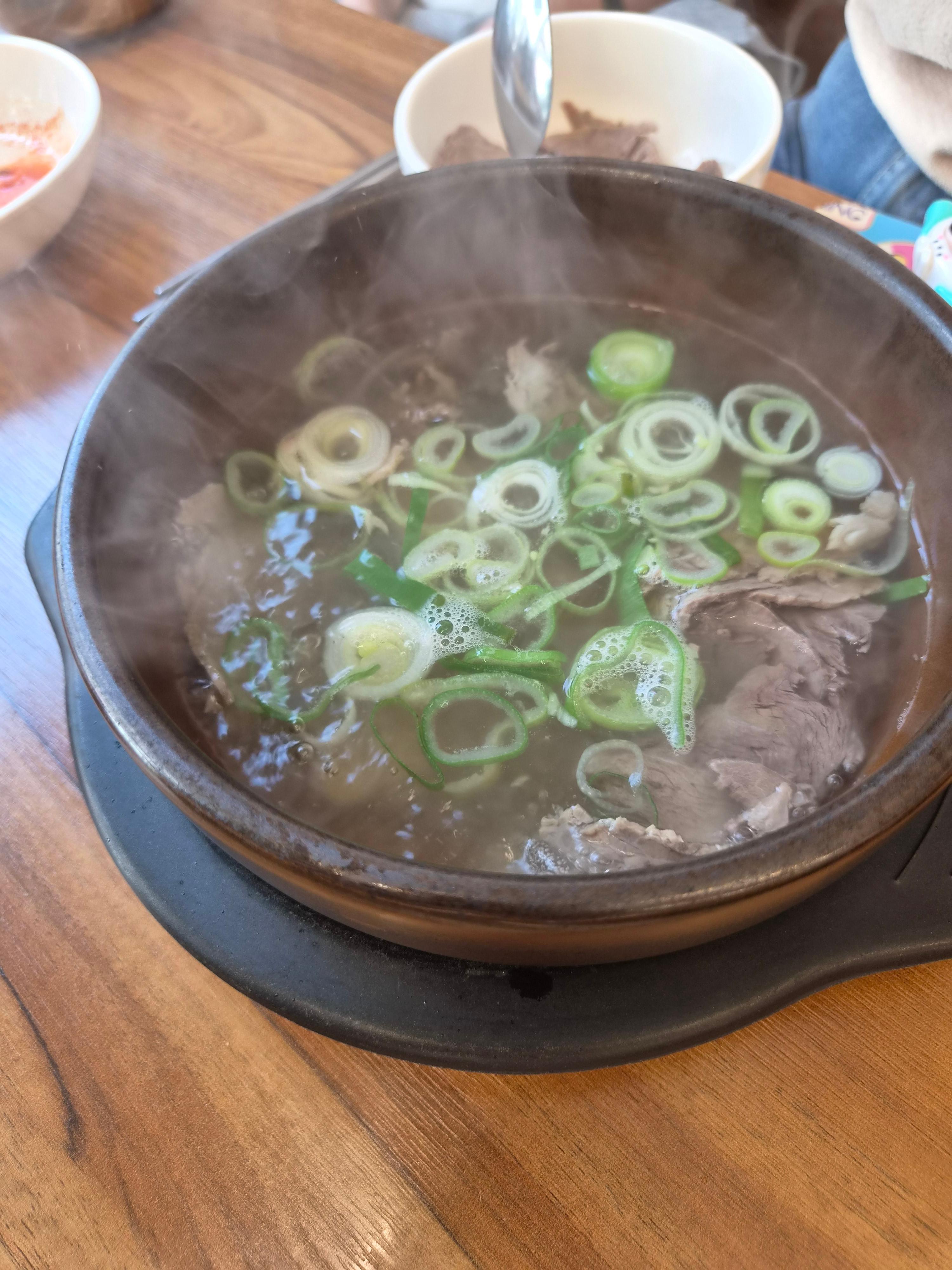 곰탕을 주문했는데 나오자마자 김이 모락모락 올라왔어요. 국물이 맑으면서도 깊은 맛이 나서 한 숟가락 떠먹는 순간 "아 제대로 끓인 국물이구나" 싶었어요. 고기도 부드럽게 잘 익어 있어서 먹기 편했어요.