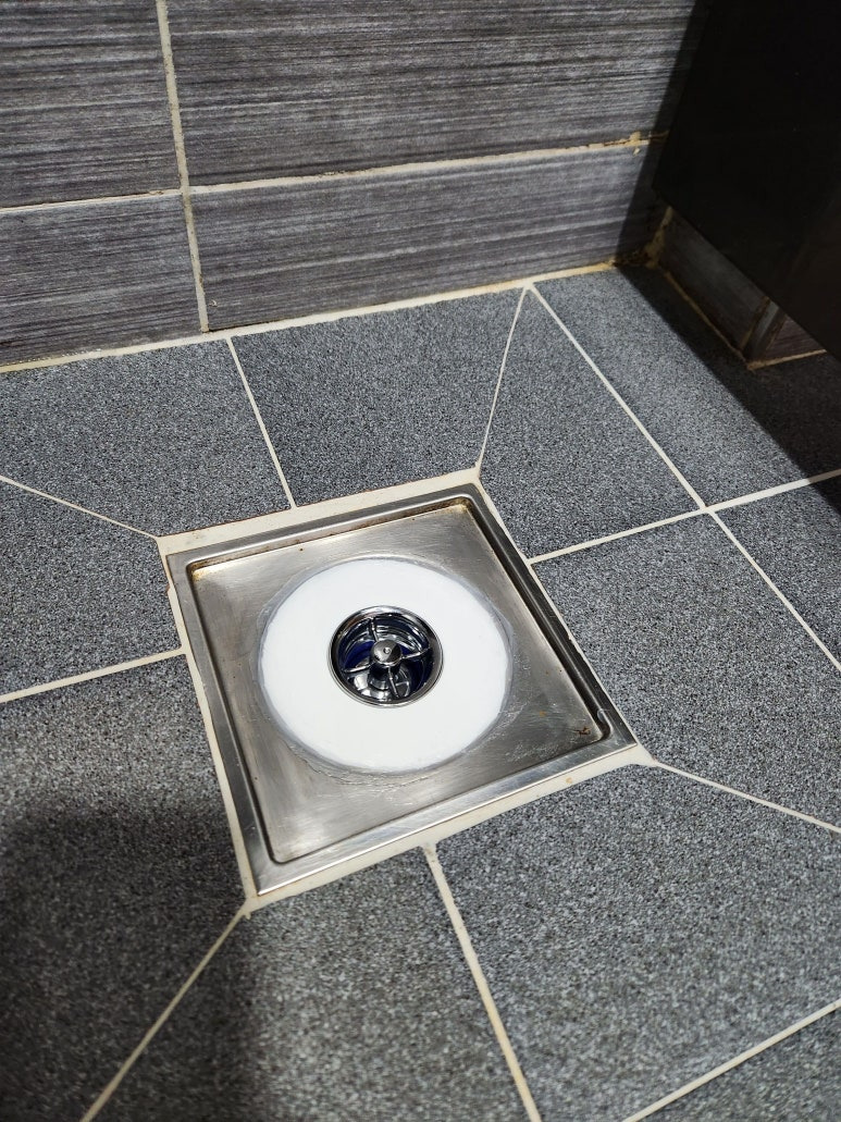 먼저 기존 트랩을 빼줍니다. 가까이 가면 이미 냄새가 확 나더라고요😂 트랩이 들어갈 자리만 남기고 나머지는 걸레나 물티슈로 깨끗하게 닦아줍니다.